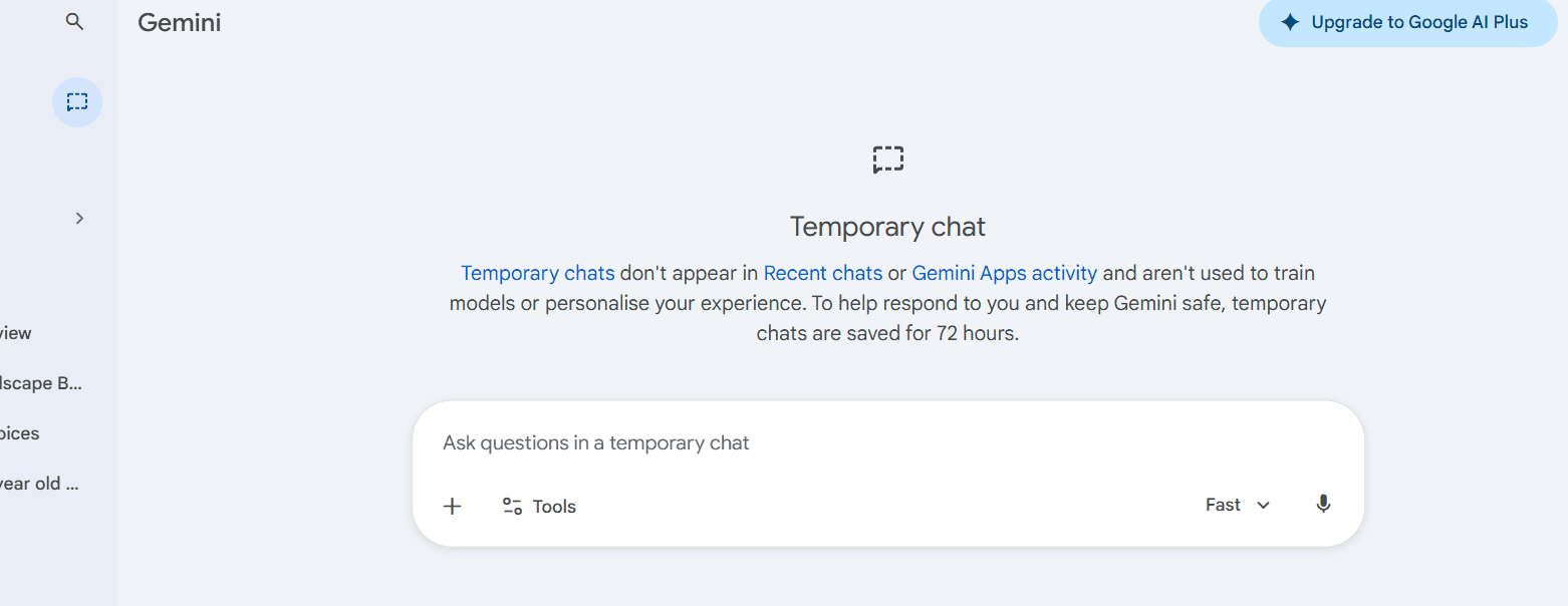 If you want to ask Gemini something sensitive without it appearing in your activity or affecting your memory, Temporary Chat gives you an incognito-style session.