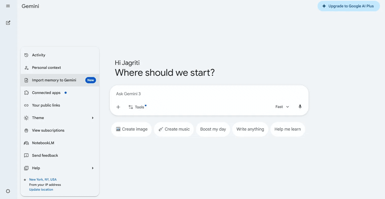 Gemini's memory feature lets the AI learn about you across conversations. That's genuinely useful. Tell it once that you're a product manager who prefers structured answers, and it'll adapt. Mention you're vegetarian, and future recipe suggestions will reflect that.